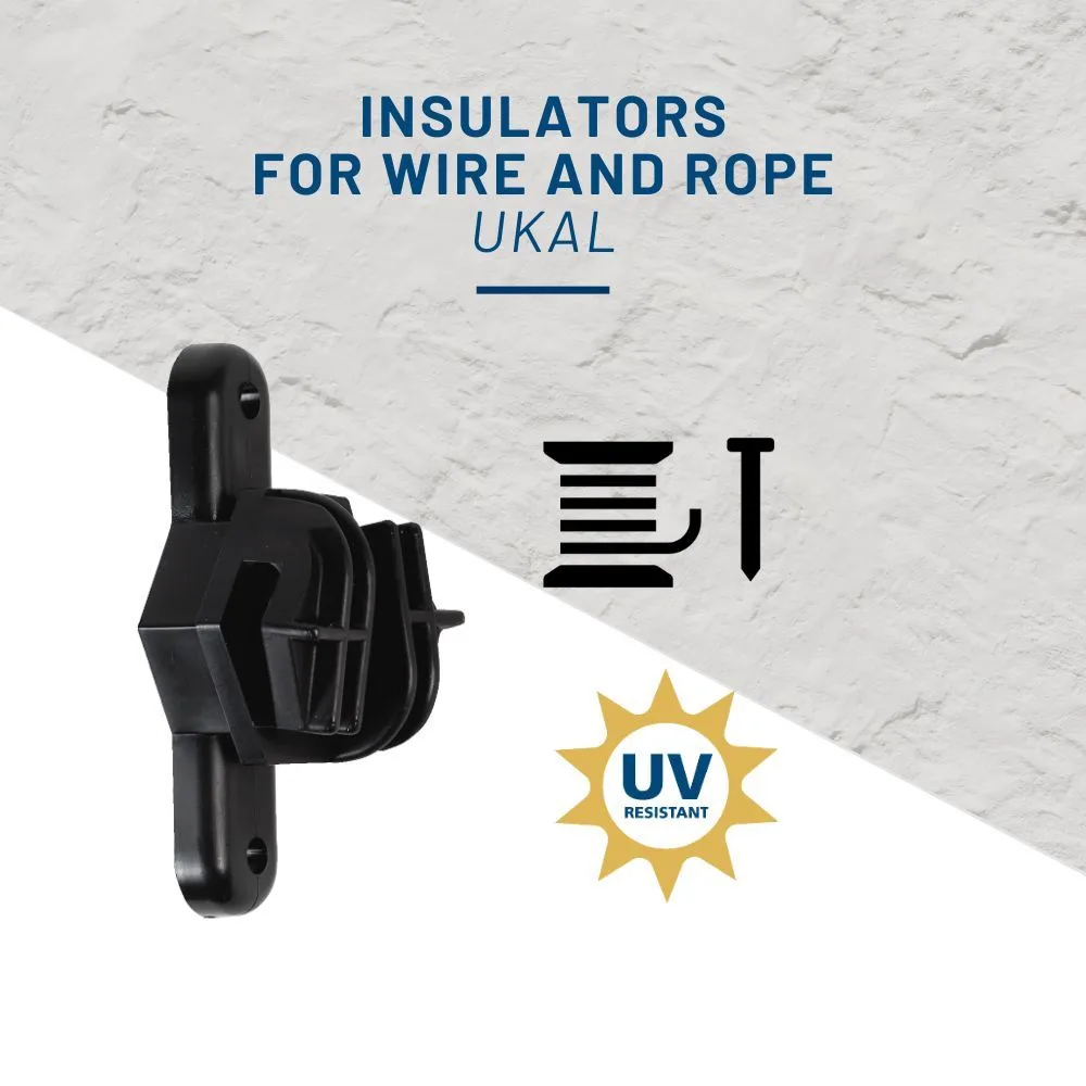 Izolator iz serije UKAL CLASSIC idealno je rješenje za pričvršćivanje električne žice ili užeta na drvene stupove ograde. Postavlja se s dva čavla (čavli nisu uključeni).