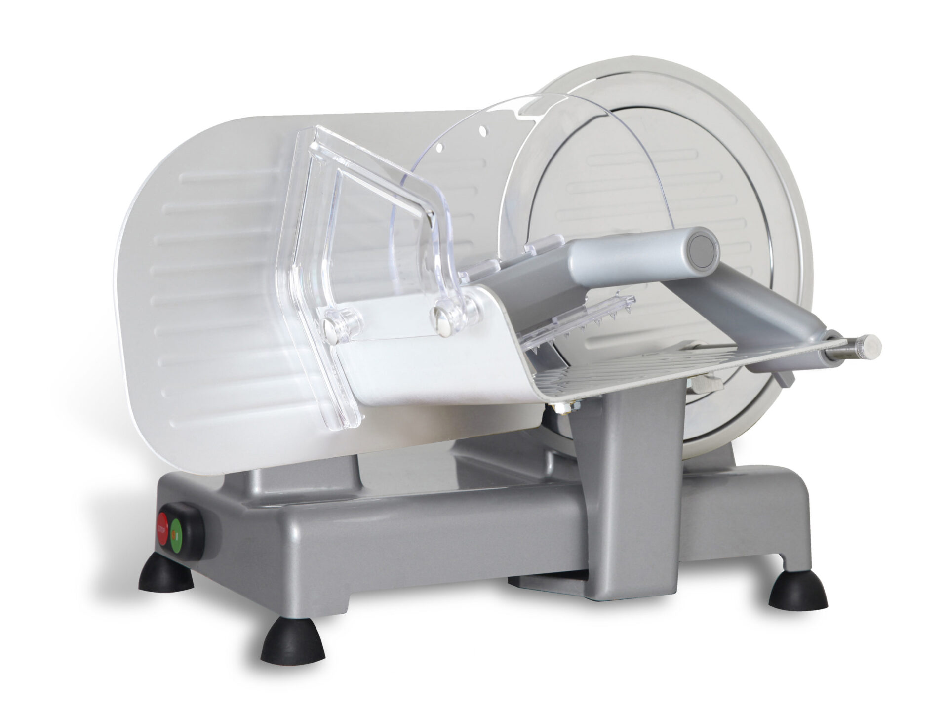 Naj postane rezanje vaših delikatesnih izdelkov hitro, enostavno in natančno na debelino rezin, ki ste si jih zaželeli. Pokrov rezila, pladenj in pregrada so iz litega in poliranega eloksiranega aluminija, ki omogoča najvišjo raven higienskega standarda (s sistemom za enostavno čiščenje). Na spodnjem delu ohišja so pritrjene vakuumske nogice za nedrseč oprijem na delovni površini. Salamoreznice Reber imajo moč motorja 120 W, 140 W ali 250 W. Rezila so iz kaljenega nerjavečega jekla in imajo možnost prilagajanja širine reza od 0 do 12 ali 15 mm. Na voljo so različne velikosti rezila: 200 mm, 220 mm, 250 mm in 300 mm. Držalna gred rezila z dvojnim krogličnim ležajem. Držalo za hrano ima konice iz nerjavečega jekla kar omogoča popoln, nedrseč oprijem izdelka katerega želite rezati. Za varnost je poskrbljeno z lito aluminijasto zaščito rezila (zaščitni obroč) in z mikro varnostnim stikalom za zaustavitev rezila, ko odstranimo zaščito.